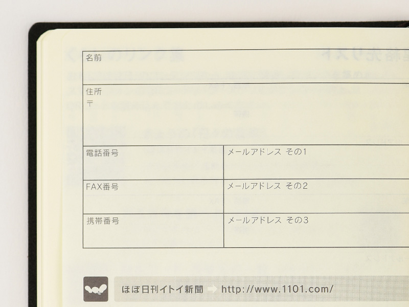 氏名、生年月日、住所、電話番号など自分の情報をまとめて書いておくページです。知られて困るような情報の取り扱いにはご注意を。