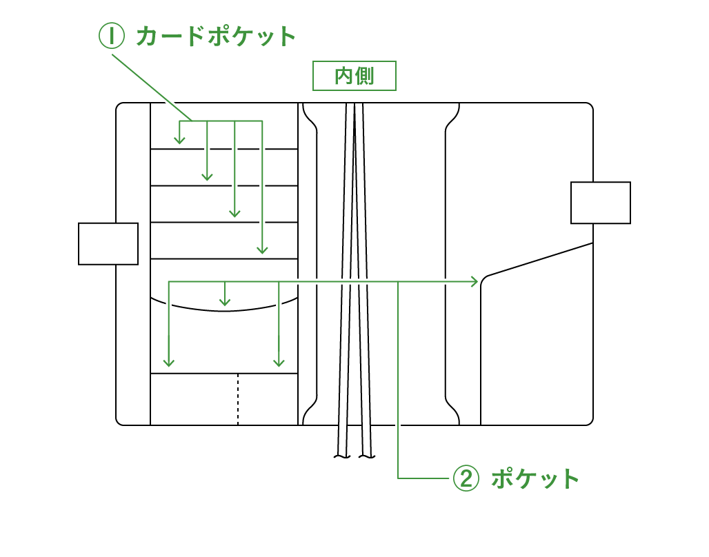 あらかじめご了承ください。- 「外側のポケット」はついていません