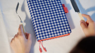 白地にブルーのギンガムチェックがプリントされた
