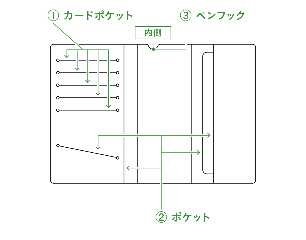 「手帳にいろいろ入れられるポケットがあると、頼りになるな」