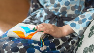 リネンの生地に、あざやかな刺繍で描かれているのは、