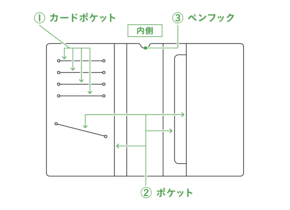 浮きが出ますが、使っていくうちになじみます。- カードポケットの幅は名刺サイズです