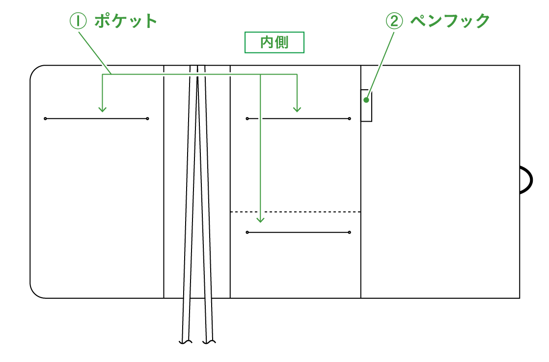 本体を入れやすくするため滑りの良い素材を内側に使用しています。お使い頂くうえで、内側の背の部分の両端が、多少めくれる可能性がございますが、構造上避けられないものですので、ご了承ください。