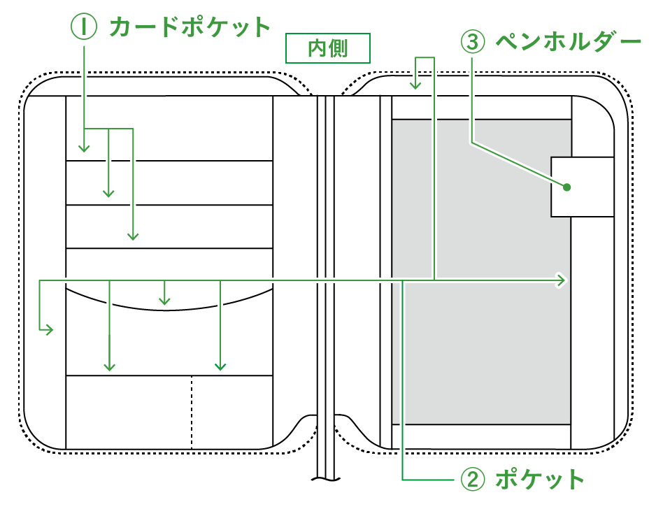 あらかじめご了承ください。- 「外側のポケット」はついていません
