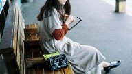 表側のフラップを開くと、内側は鮮やかなライムグリーン。