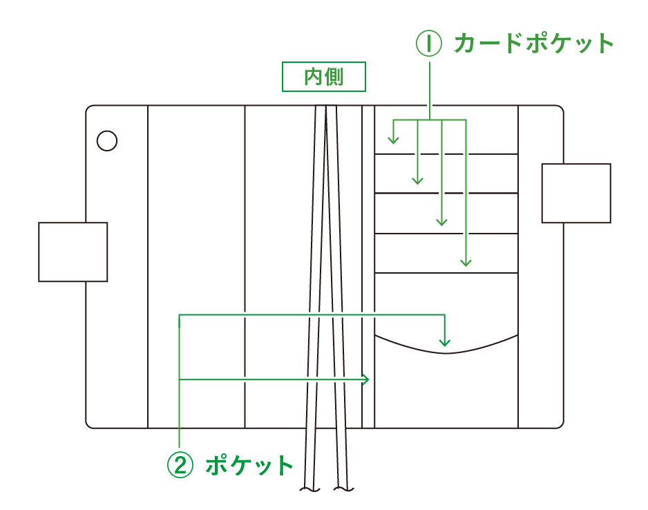 衣服や持ち物に色移りしやすくなるためご注意ください。- カバー内がわの革にたるみが出ることがあります