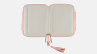 ピンク色の革製タッセルとともに