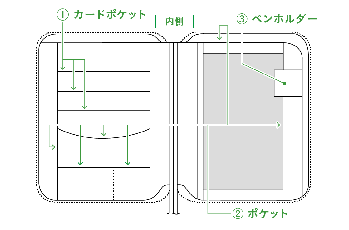 変質や色落ち、色移りが起こるおそれがあります。- カバーの使いはじめはペンホルダーに