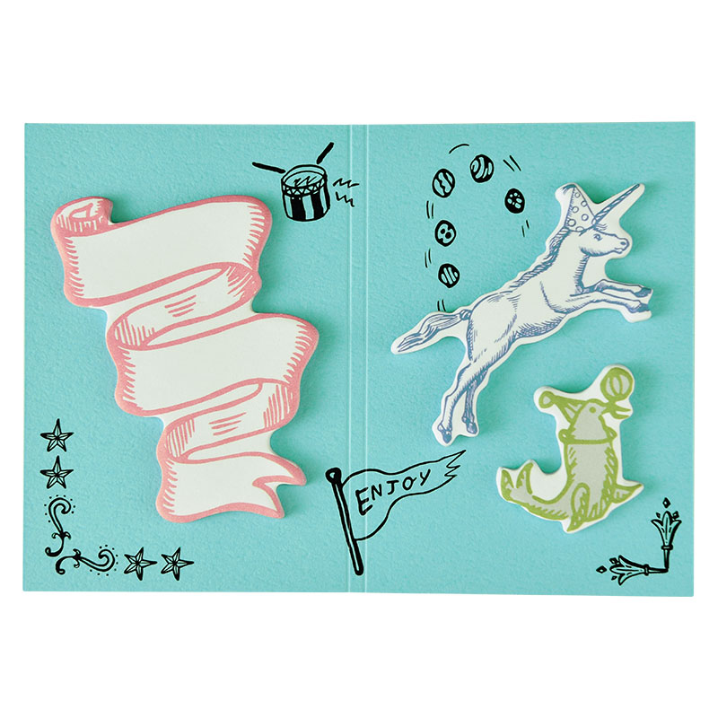 リボン、一角獣、オットセイのふせんが入った「ブルー」と