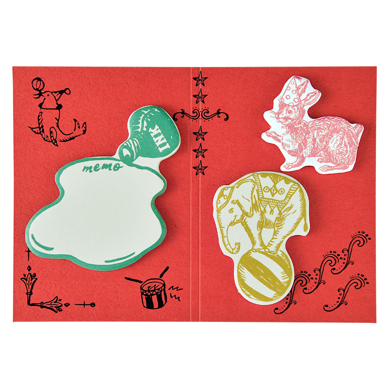 インク、うさぎ、ゾウのふせんが入った「レッド」から
