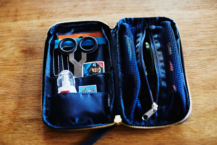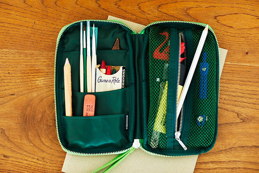 ①ペン類はもちろん、すこしかさばるハサミや修正液まで、