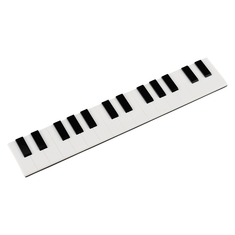 ピアノの鍵盤をモチーフにした17cmのアクリル定規です。ツルツルとなめらかな質感です。