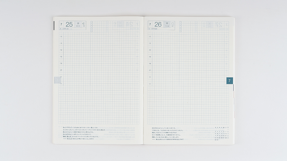 - Time Table/Graph Paper/Favorites/My 100/日本全国ローカルごはんリスト/ほぼ日のTKストレッチ/世界の人と、ちょっとおしゃべりを。/二十四節気のこと/もしものときの、準備をしよう/Gifts/満年齢早見表/単位換算表/くらしのリンク集/Addresses(for 8 people)/Personal Notes