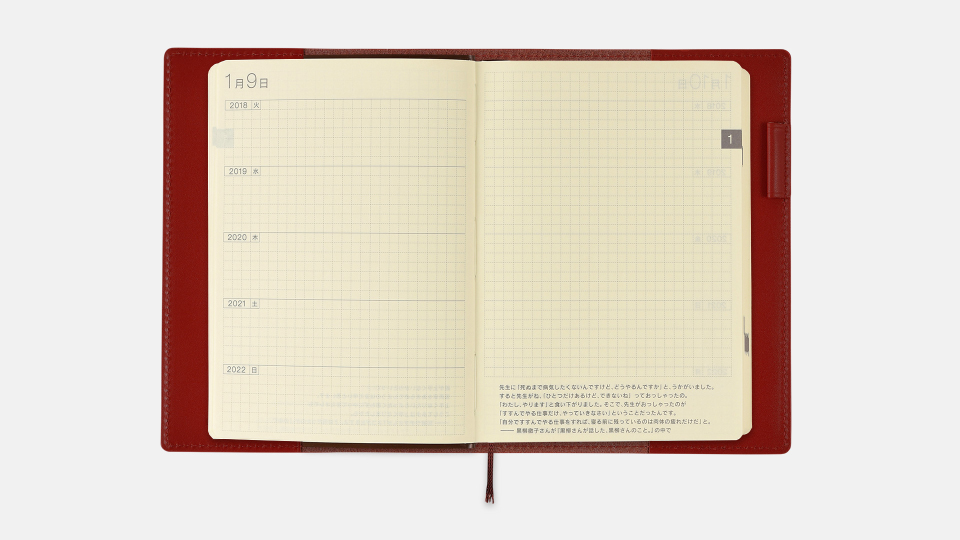ほぼ日手帳のカバーは、ほぼ日5年手帳用のカバーとしてはお使いいただけませんのでご了承ください。
