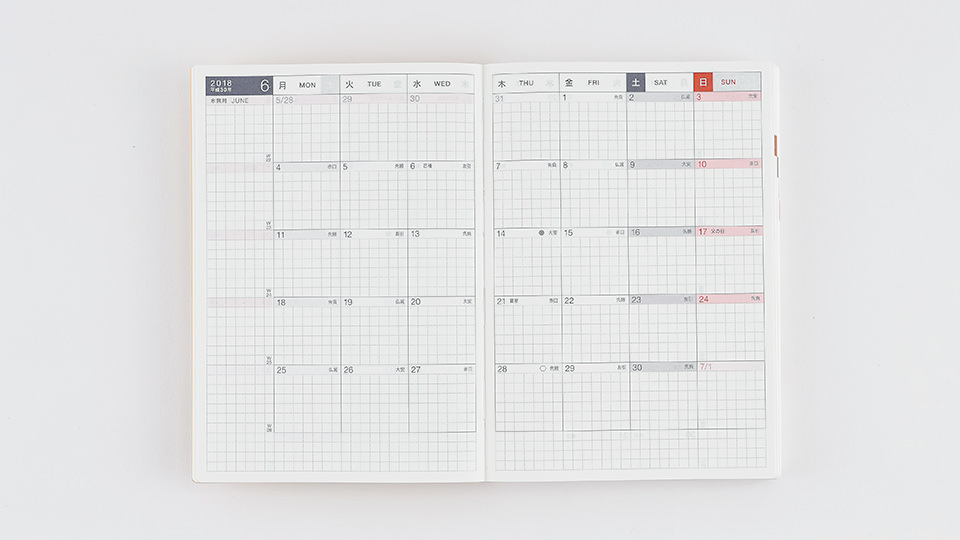 文庫本サイズ(A6)の、1日1ページの手帳です。
