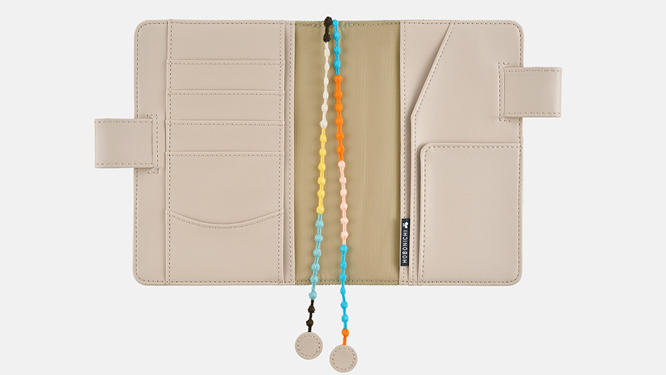 糸の先を紐の編み目にさし込んでお使いください。- カバーの使いはじめはペンホルダーに