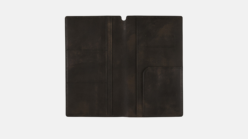 ムラ染めと呼ばれる加工を施した牛革を使用。