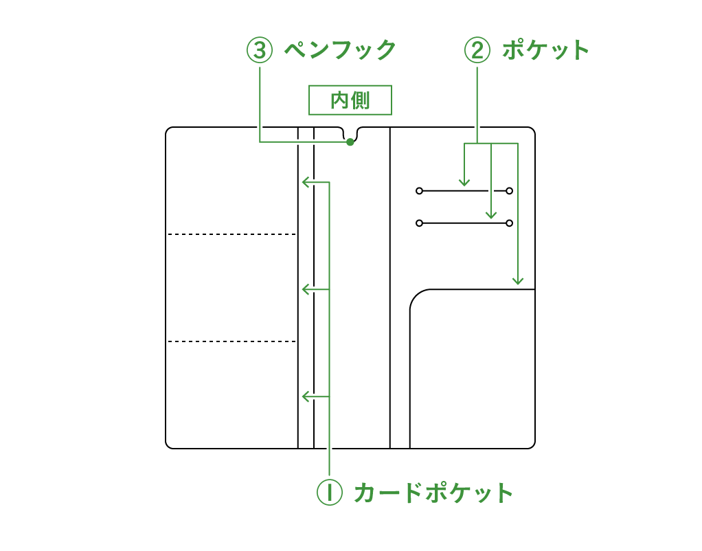 変質や色落ち、色移りが起こるおそれがあります。- weeksの表紙は片側のみを入れて