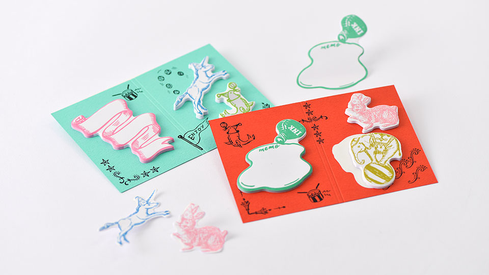 インク、うさぎ、ゾウのふせんが入った「レッド」から