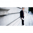 白とグレーのストライプの上に、