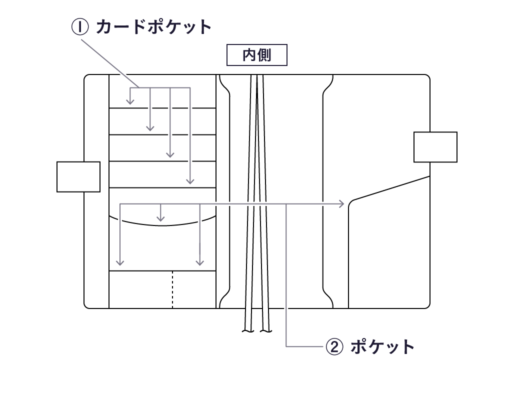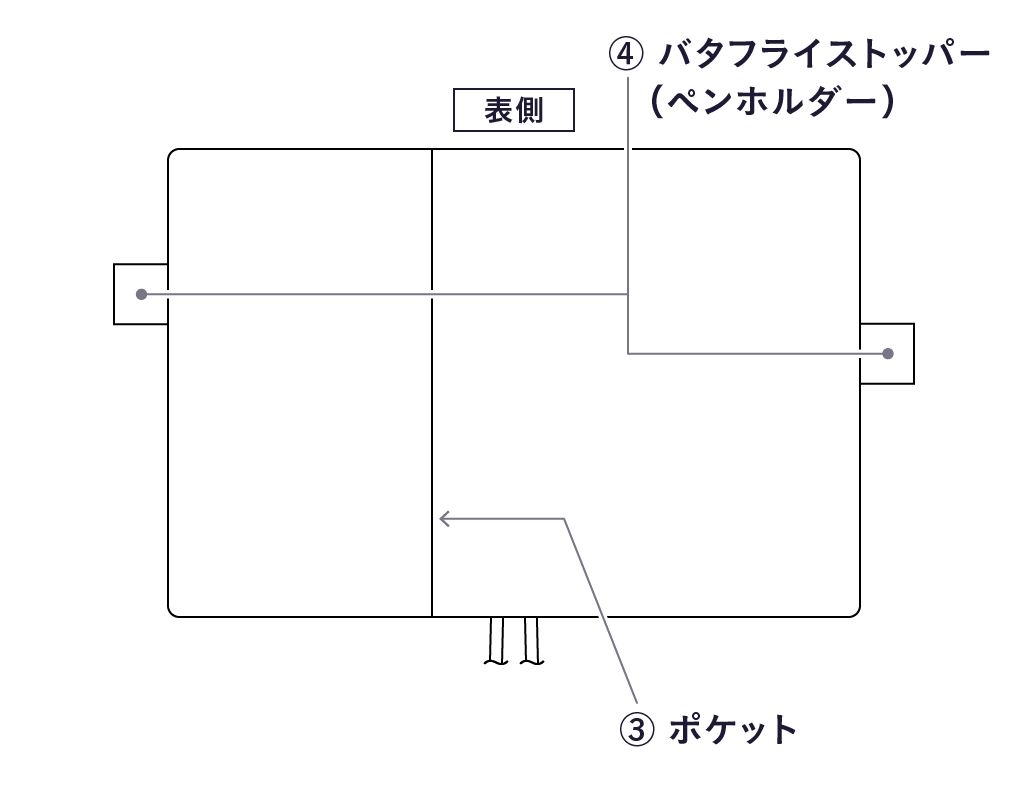 180度平らに開くカバーの構造上、カバー表面の縫製がギャザーのように見えるものもあります。また裏地のたるみがでることがあります。あらかじめご了承ください。