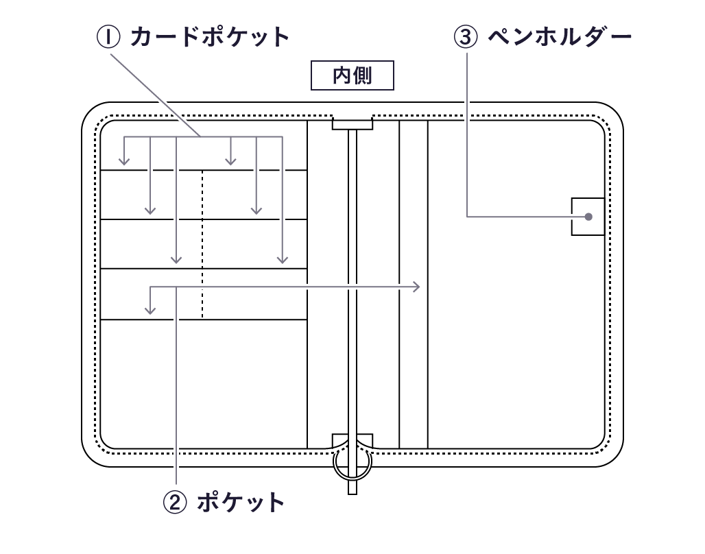 180度平らに開くカバーの構造上、カバー表面の縫製がギャザーのように見えるものもあります。また裏地のたるみがでることがあります。あらかじめご了承ください。