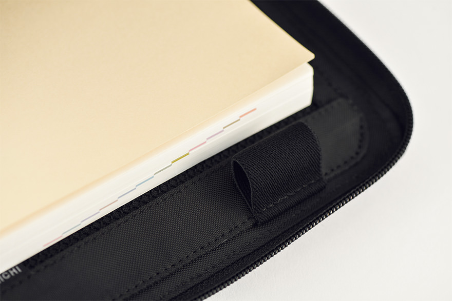 カバーの使いはじめは、ペンホルダー、またはバタフライストッパーの生地や革がかたいため、ペンが抜きさししづらくなっています。