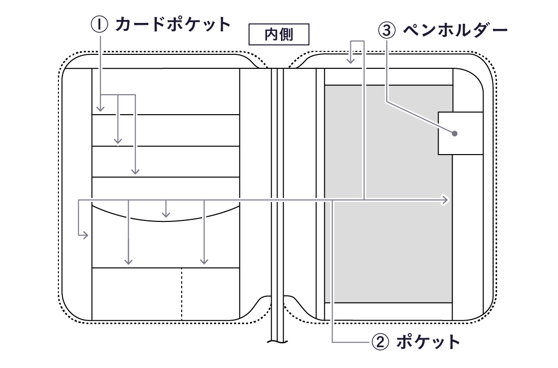 カバーの使いはじめは、ペンホルダー、またはバタフライストッパーの生地や革がかたいため、ペンが抜きさししづらくなっています。