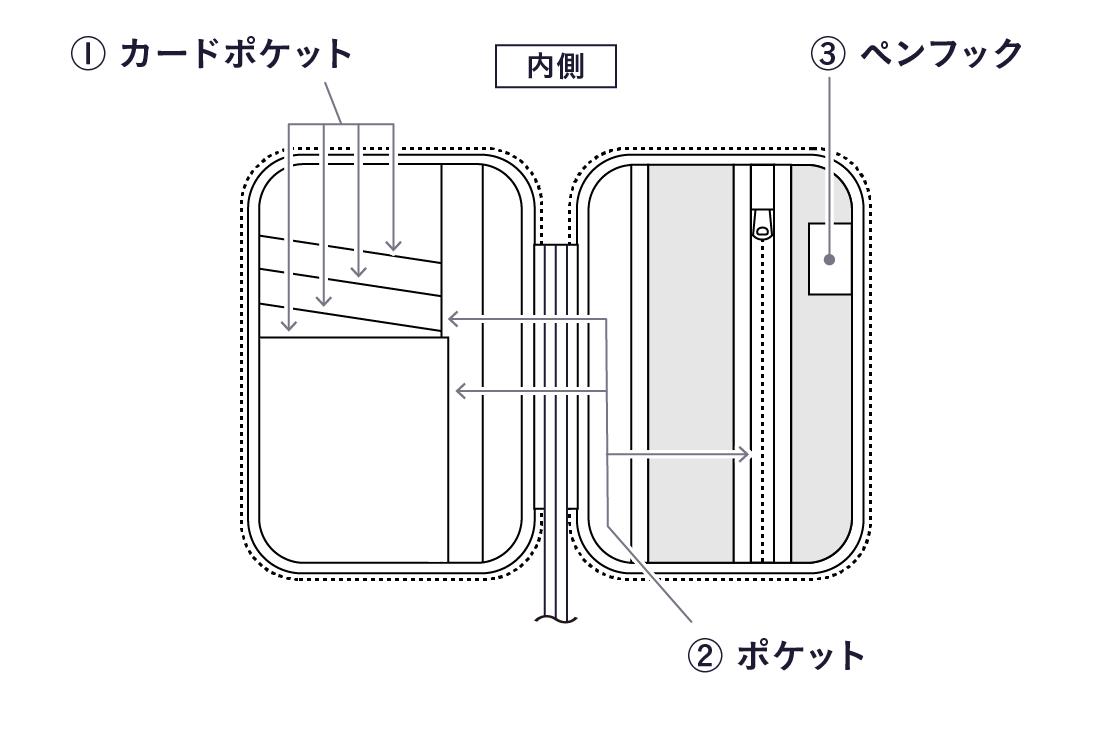 日常で使うものを、手帳とにまとめて持ち歩けます。