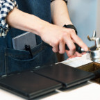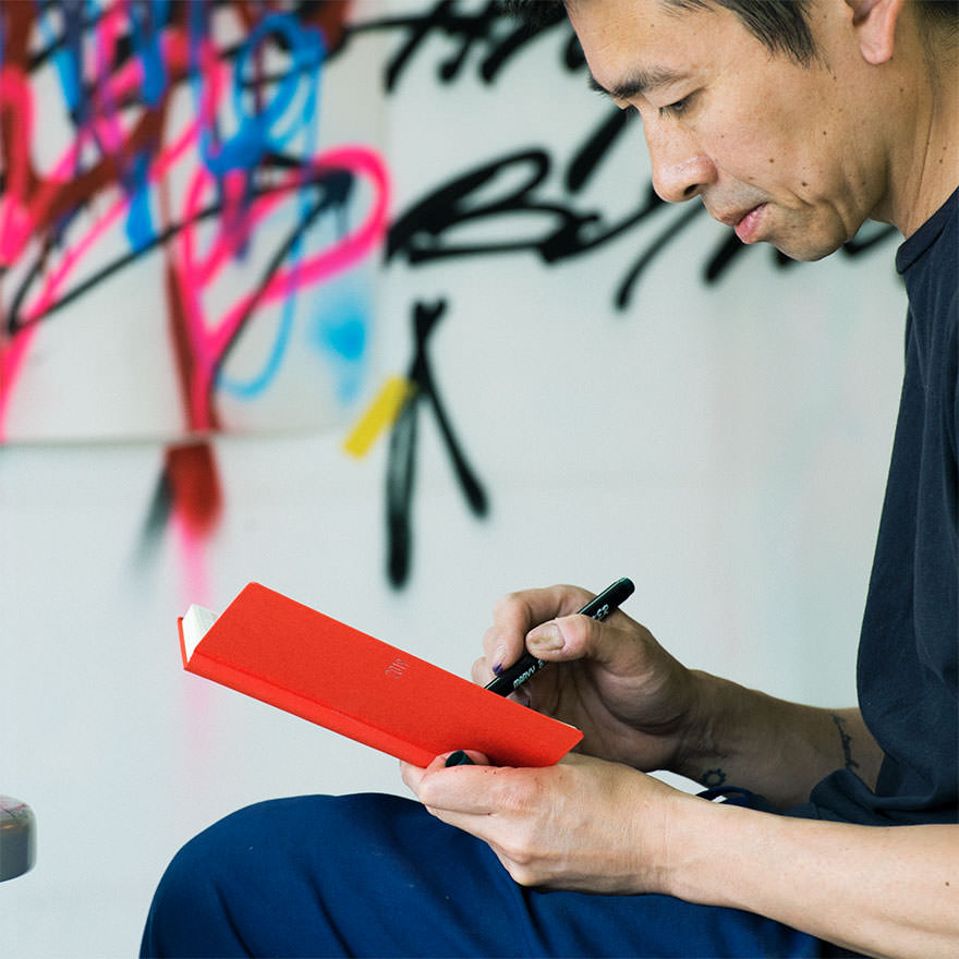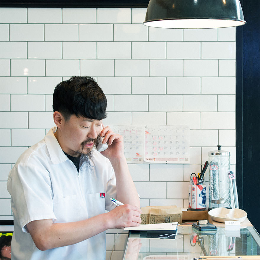 手帳に記録するオーナーの中村謙太さん。