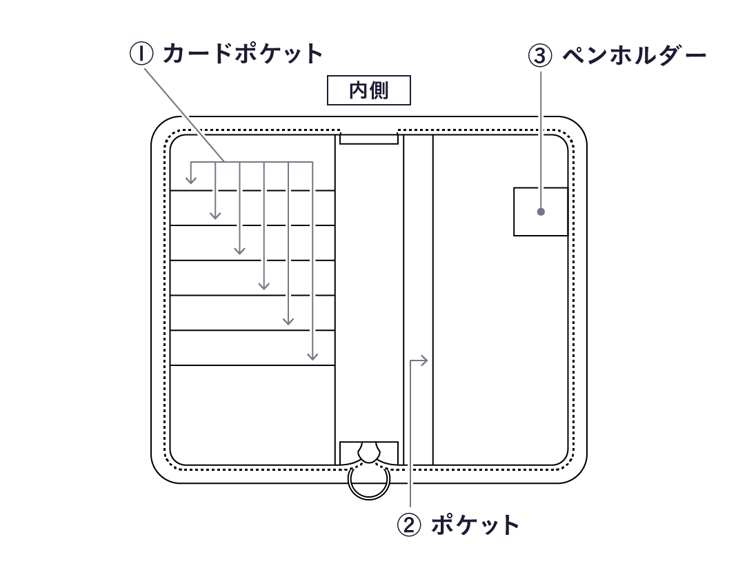 このカバーのペンフックは、ペンのクリップ部分を差し込んで使用するものです。ペンのサイズや形状によっては、ジッパーを開閉しづらくなることがあります。