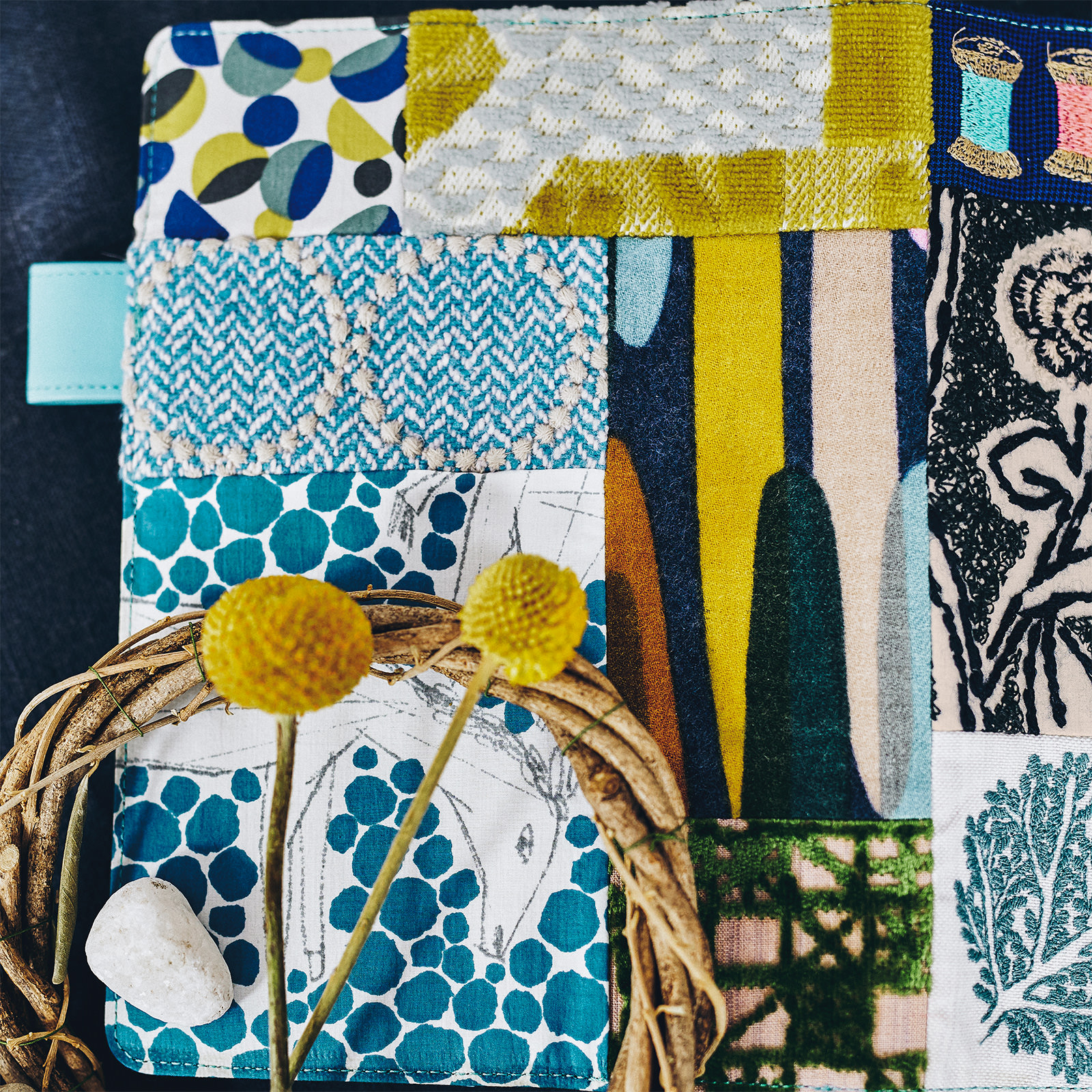 パッチワークに使用される生地は、基本的には同じテキスタイルが使われていますが、カバーごとに生地の使用される部分が異なります。