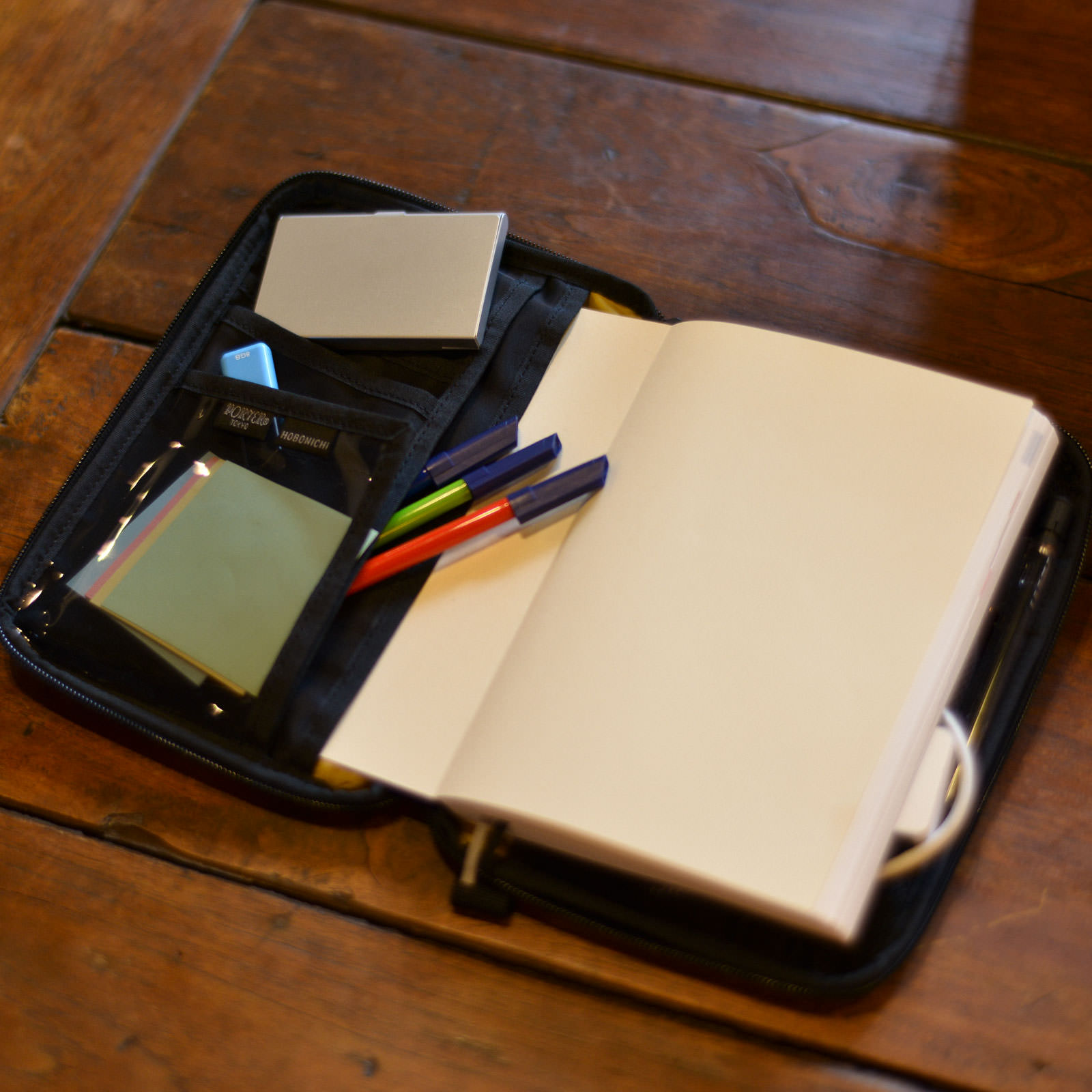 日常で使うものを、手帳とにまとめて持ち歩けます。