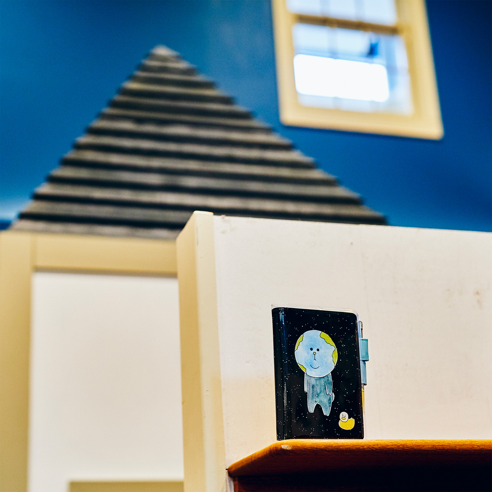 ちきゅうちゃんが星のあいだに浮かぶよう。
