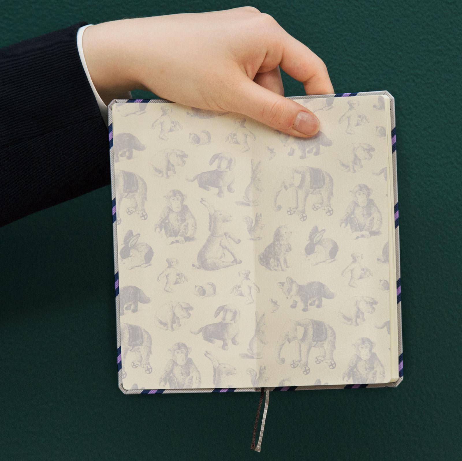 いろんな動物のぬいぐるみたちが描かれた、
