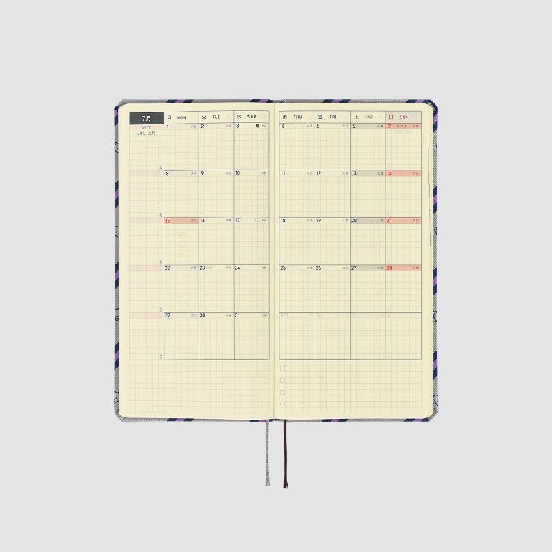 | 基本仕様 | 掲載期間:2019年4月~2020年3月 週の区切り:月曜はじまり ページ構成:週間ページ/月間ページ/おまけページ |