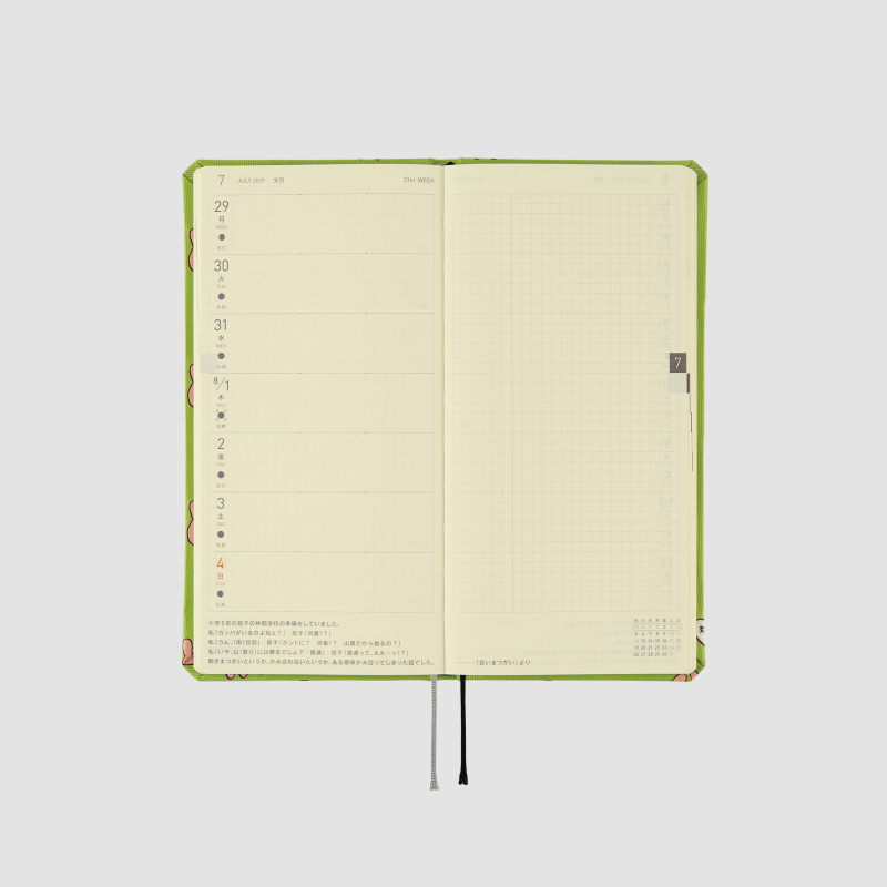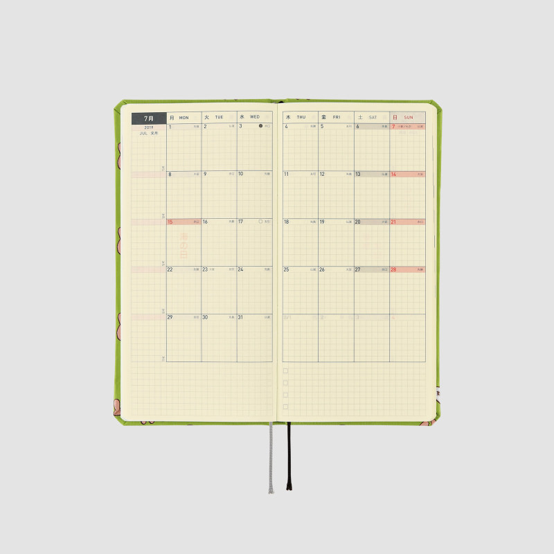 | 基本仕様 | 掲載期間:2019年4月~2020年3月 週の区切り:月曜はじまり ページ構成:週間ページ/月間ページ/おまけページ |