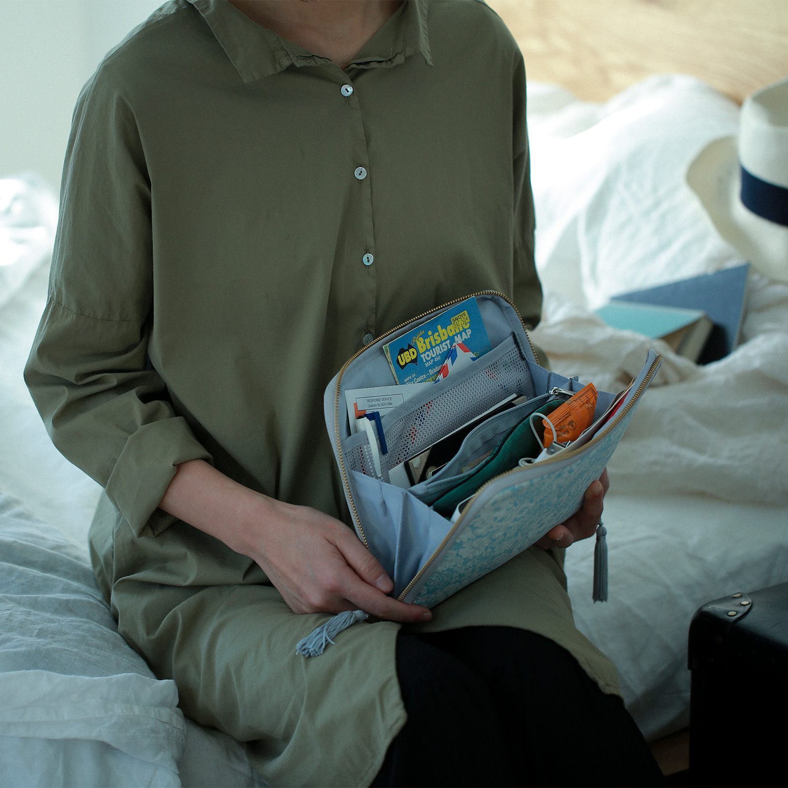 ポーチ外側にもひとつ、A5サイズのものが入る