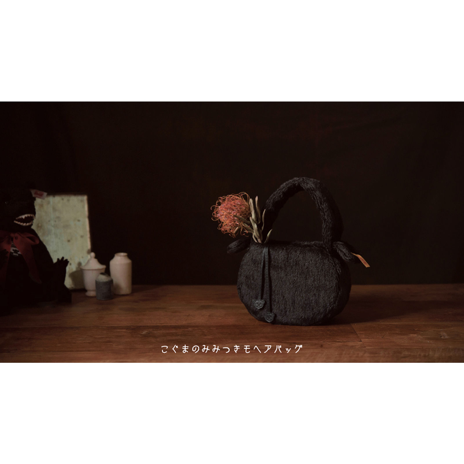| 主な素材 | 表側 :モヘア/コットン/ポリエステル 内側 :ポリエステル 口ひも :ポリエステル チャーム :牛革 ボタン :真鍮 タグ :ポリエステル |