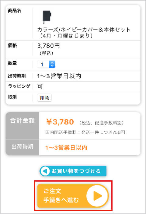 (9月上旬、2月上旬の手帳の発売直後の時期や、再生産アイテムなどは、さらに日数がかかることがございます。出荷時期はすべて各商品ページでご案内しています)