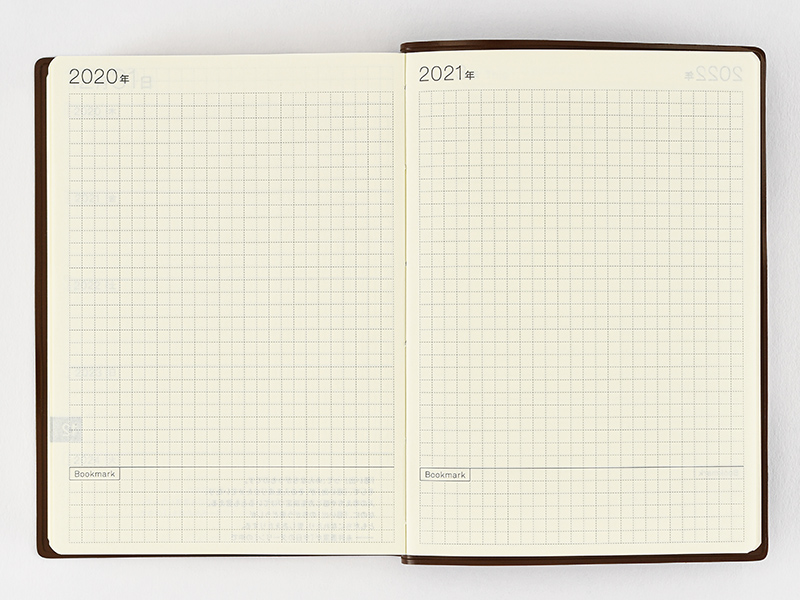 1年ごとの計画や振り返りを書くことができるページです。「Bookmark」は、あとで確認したい日付のメモなどに使えます。