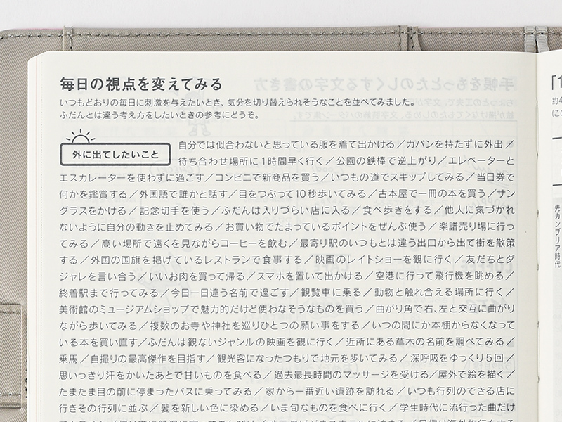 いつもどおりの毎日に刺激を与えたいとき、気分を切り替えられそうなことを並べてみました。ふだんとは違う考え方をしたいときの参考にどうぞ。