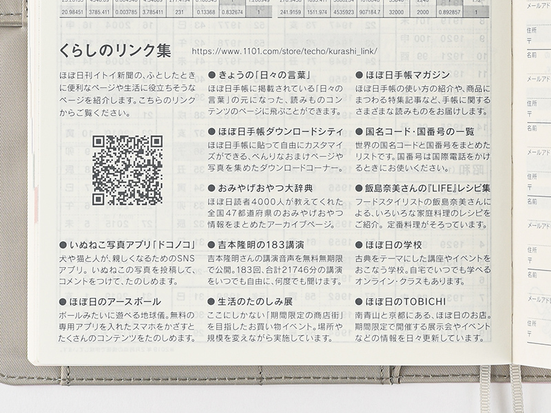 1日ページと同じ、3.7ミリの方眼がうすく印刷されたメモページです。<収録メモページ数>通常版(1月はじまり):5ページ分冊版avec(1~6月):7ページ分冊版avec(7~12月):5ページ