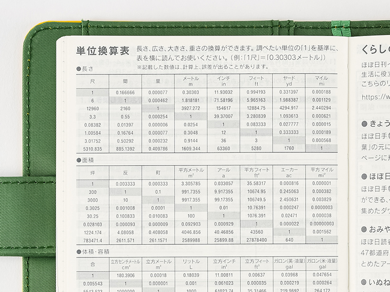 長さ、広さ、大きさ、重さの単位を別の単位に換算したいときに役立つ一覧表です。