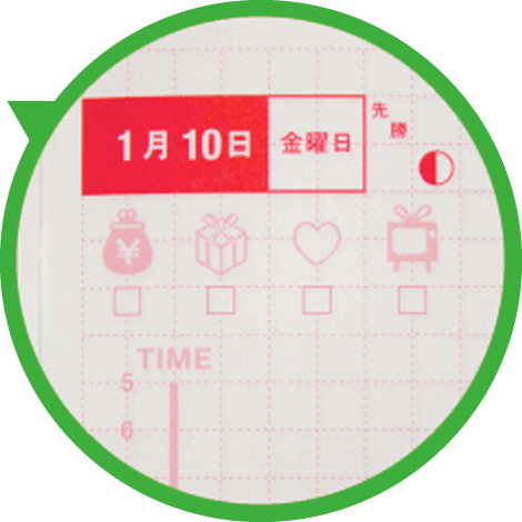3年目、多くのかたからの「革の手帳がほしいです」という声を受けて、黒革・茶革・ヌメ革のカバーが登場。5色のナイロンカバーとあわせて8種類から選べるようになりました。カバー自体も引き続き進化し、「外側のポケット」が登場。ナイロンカバーに撥水加工をほどこしたのも、この年からでした。手帳の中身は1日ページに「秘密の縦ライン(使いたい人だけが使えるさりげない区切り線)」が登場。チェックボックスはイラストがなくなり、シンプルな見た目になりました。さらにこの年、それまで全ページに入っているわけではなかった「日々の言葉」が365日すべてに入るようになりました。「ほぼ日刊イトイ新聞」から生まれた手帳ならではの特徴として、以来毎年収録されています。