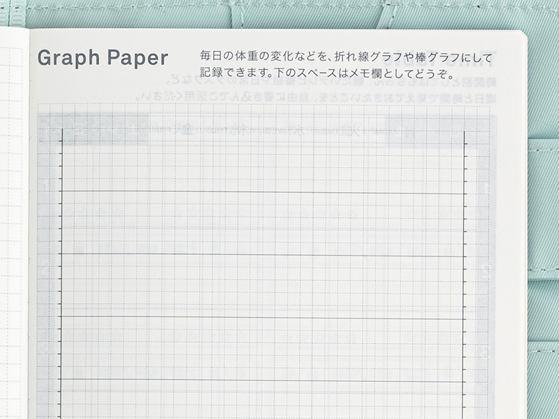 体重の変化や目標に向けての記録などを残すのに便利なグラフ用紙です。横軸は31目盛りで、1ヵ月の記録にも便利です。下部分はメモスペースとしてお使いいただけます。