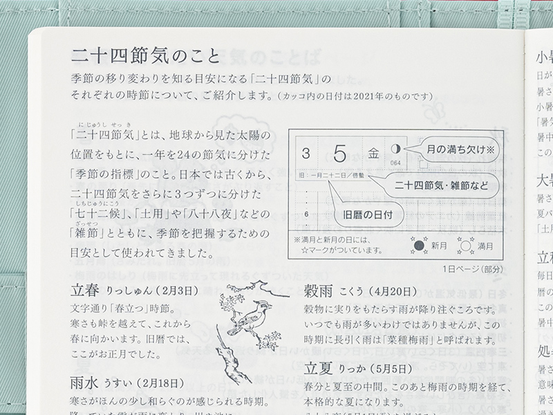 「立春」や「冬至」など、季節の移り変わりを知る目安になる「二十四節気」について解説しています。
