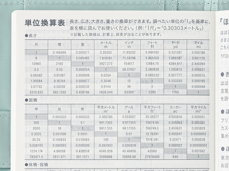 長さ、広さ、大きさ、重さの単位を別の単位に換算したいときに役立つ一覧表です。