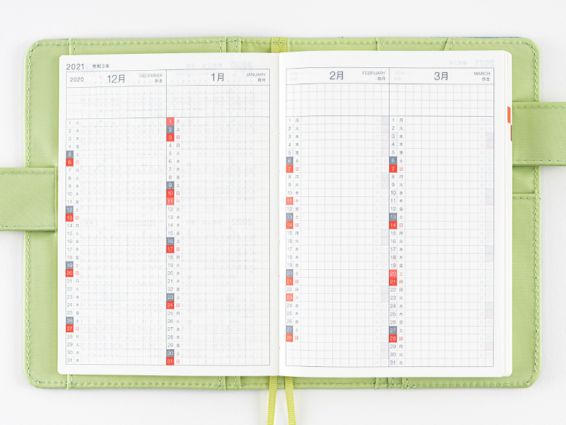 4ヵ月を見開きで一覧できる長期的な予定管理のページを16カ月分収録。ページの上部には、自由に書き込めるスペースを4ライン分設けています。<「年間インデックス」掲載期間>1月はじまり版:2020年12月~2022年3月4月はじまり版:2021年2月~2022年5月