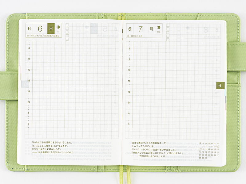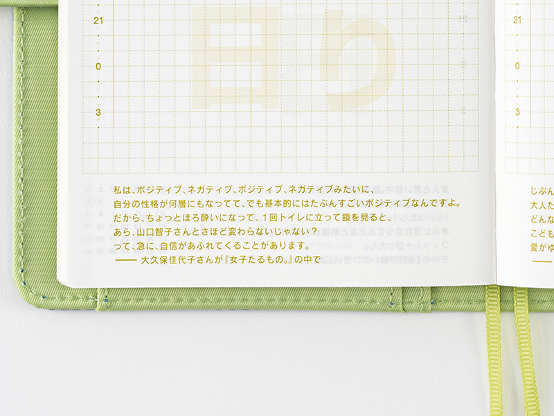 1ヵ月ごとに異なる色で辞書のようなツメをつけています。書くときや読み返すとき、目的のページにたどりつきやすくなっています。